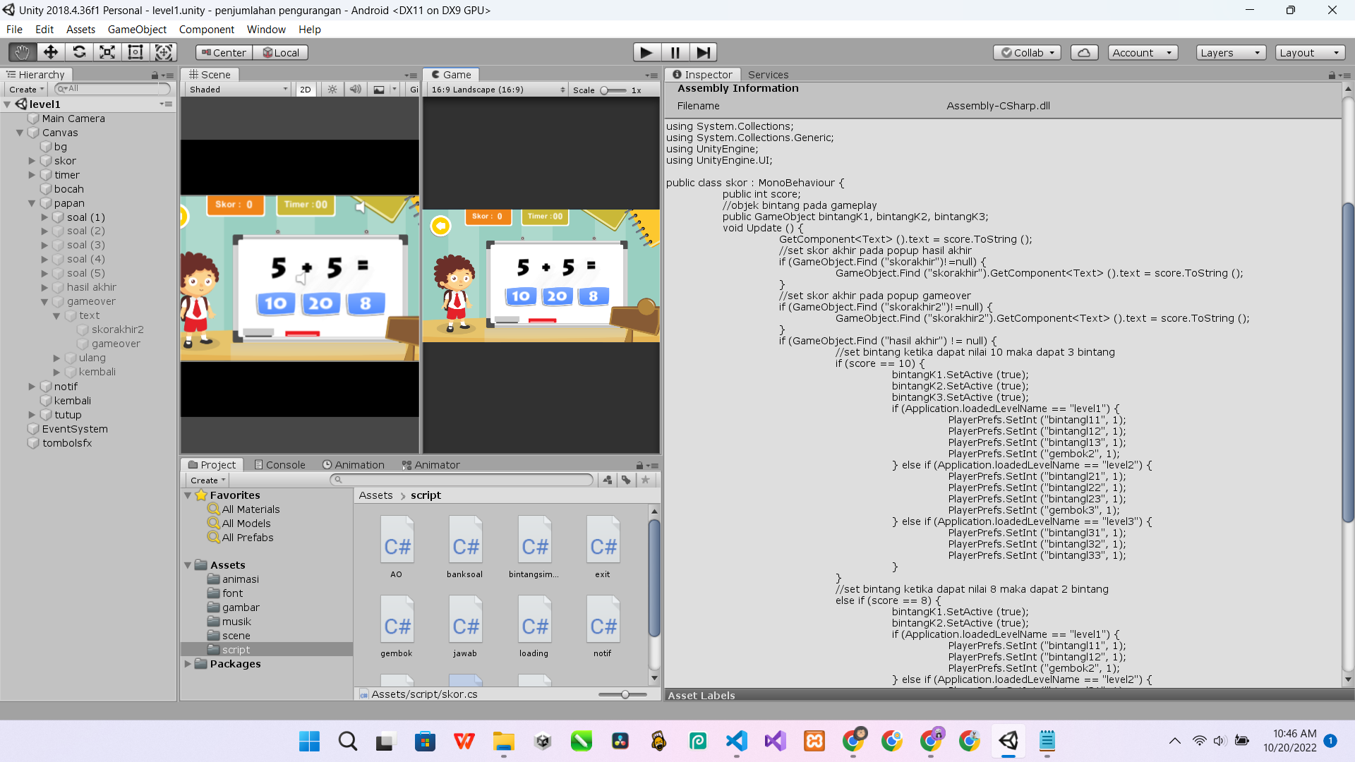 Master Project Penjumlahan dan Pengurangan Unity | Source Code