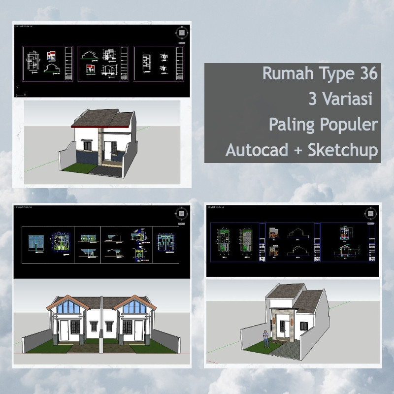 Rumah Type 36 File Autocad + Sketchup 3 Versi