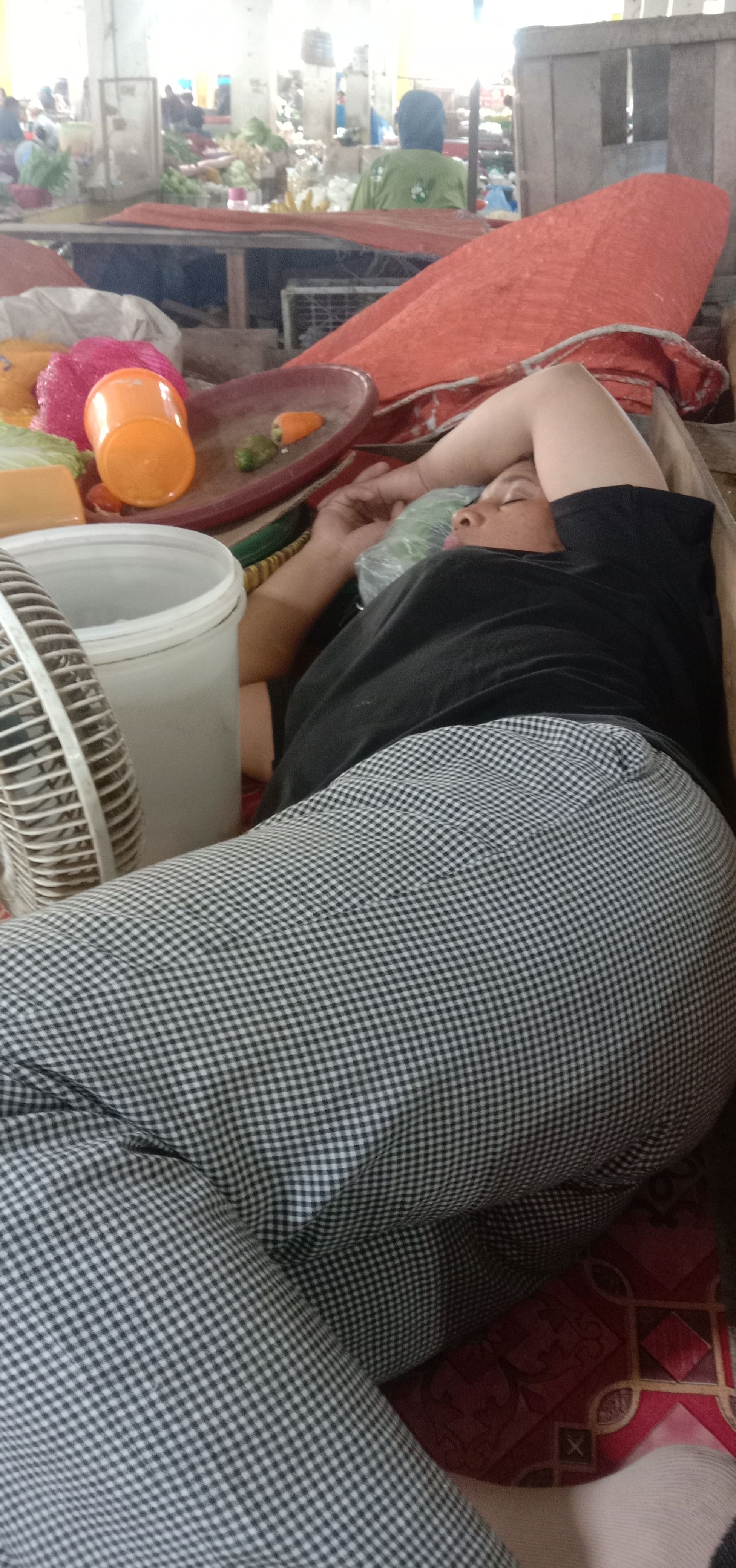 Berikut video ibunda tertidur dilapak jualannya pada jam 13:00,mungkin karena efect agak nyeri pada 2 gumpalan di payudara kananNya.