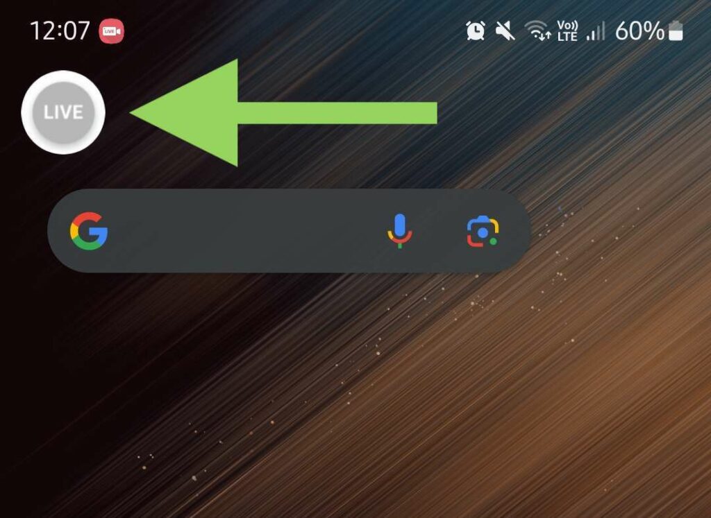 Press the floating “Live” button