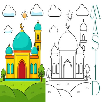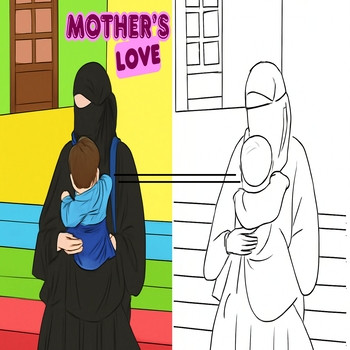 Introduce them to Islamic values in an engaging way: Coloring while learning! with theme: