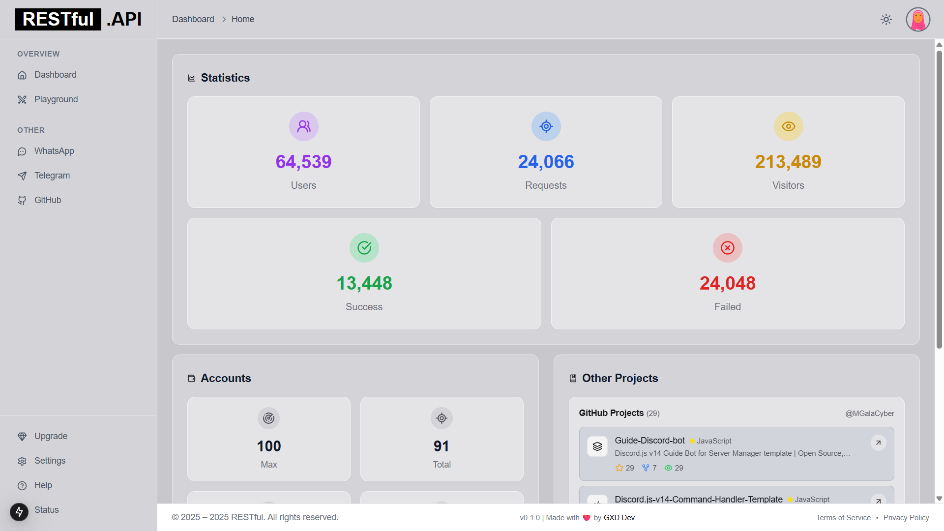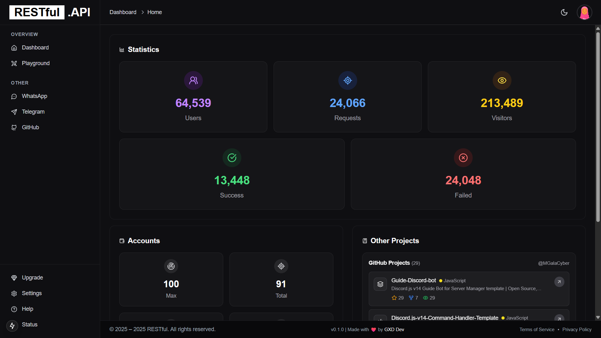 - Stats & Status Page