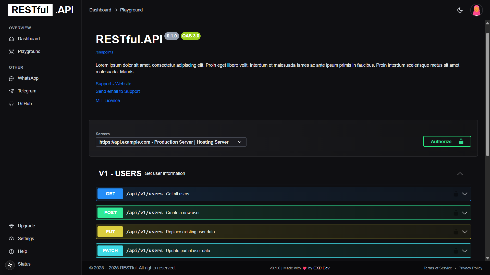 π§ͺ API Playground using Swagger UI inside the dashboard
