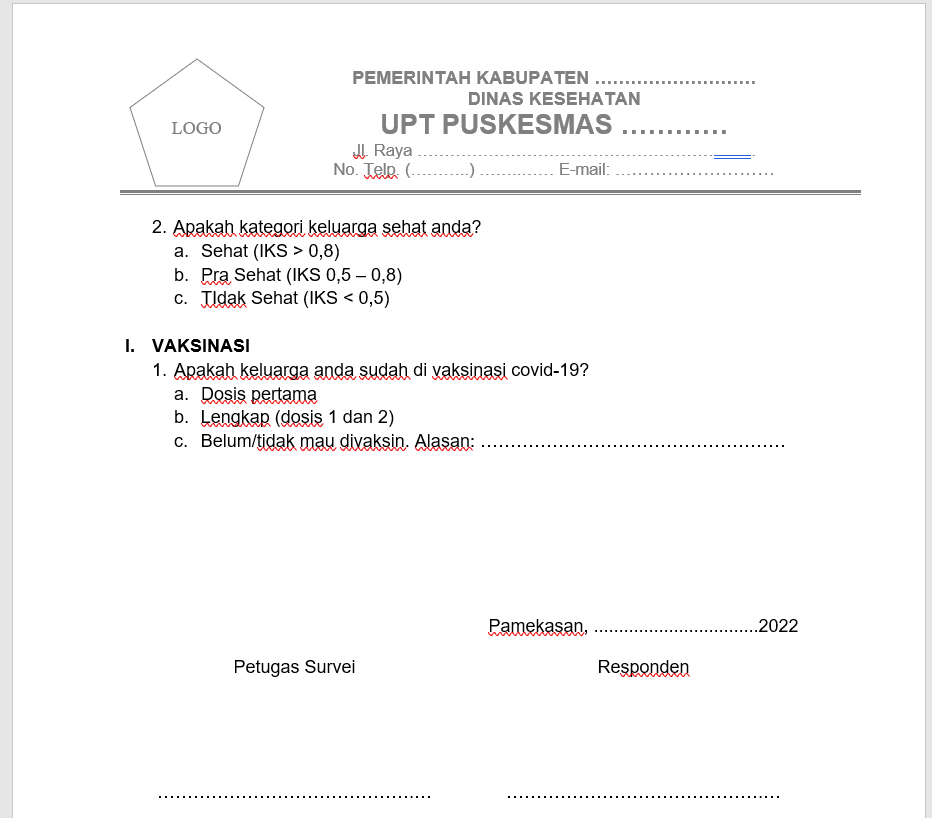 FORMULIR SURVEI MAWAS DIRI (SMD)