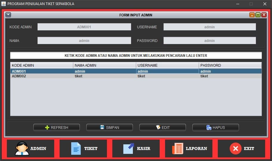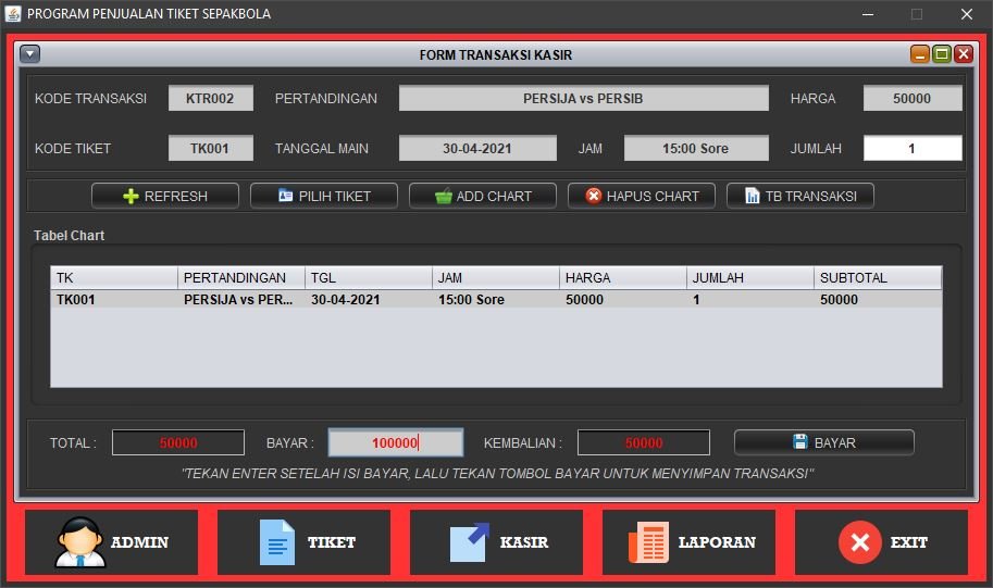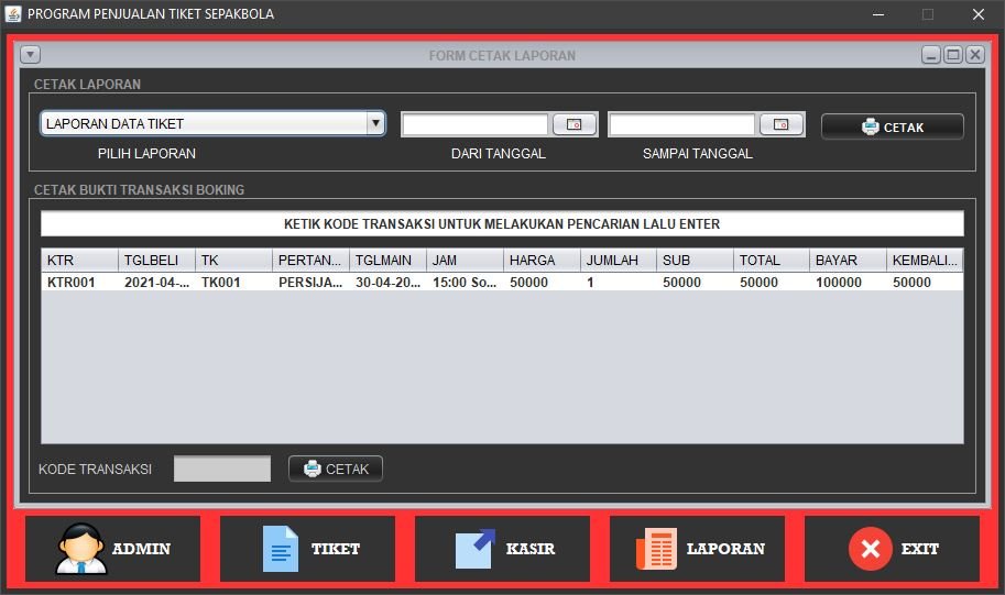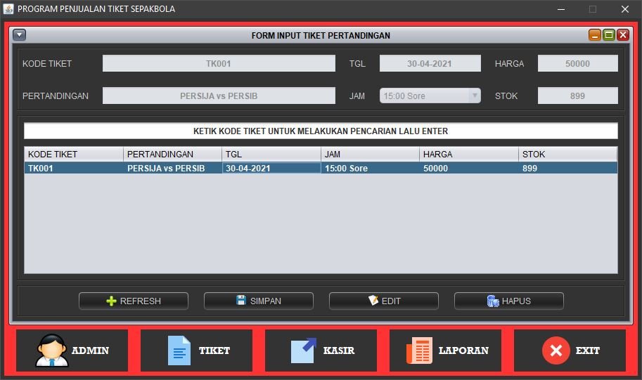 PROGRAM PENJUALAN TIKET SEPAKBOLA JAVA NETBEANS