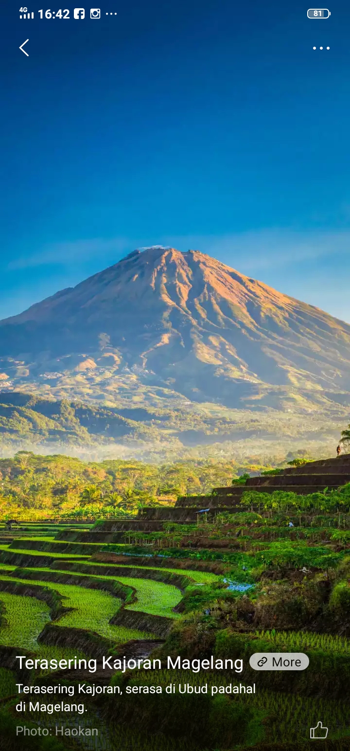 Gunung Merapi yang paling aktive di daerah central Jawa, di perbatasan Jogyakarta dan Megelang.