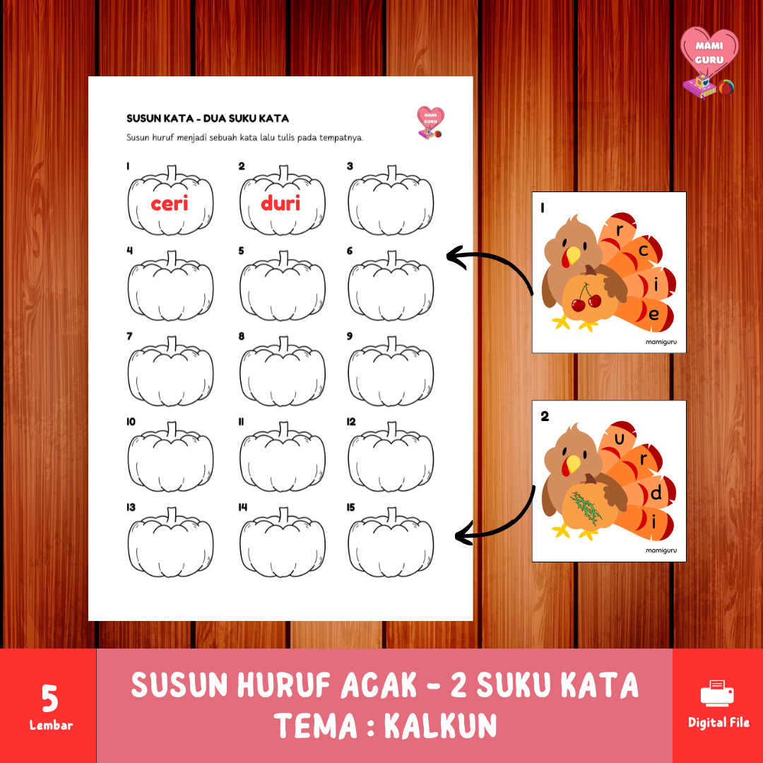 Susun Huruf Acak - 2 Suku Kata - Tema : Kalkun