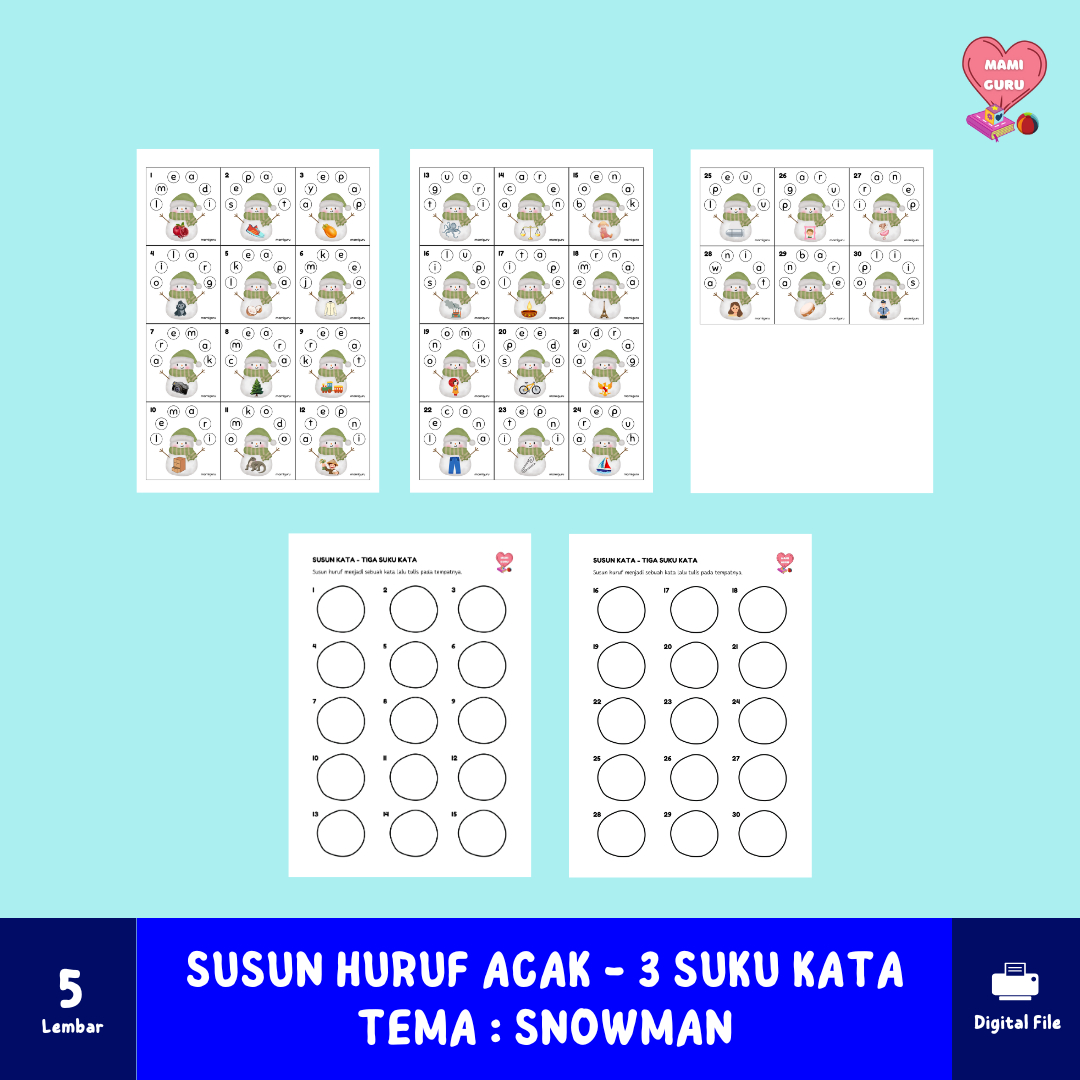 Susun Huruf Acak - 3 Suku Kata - Tema : Snowmen