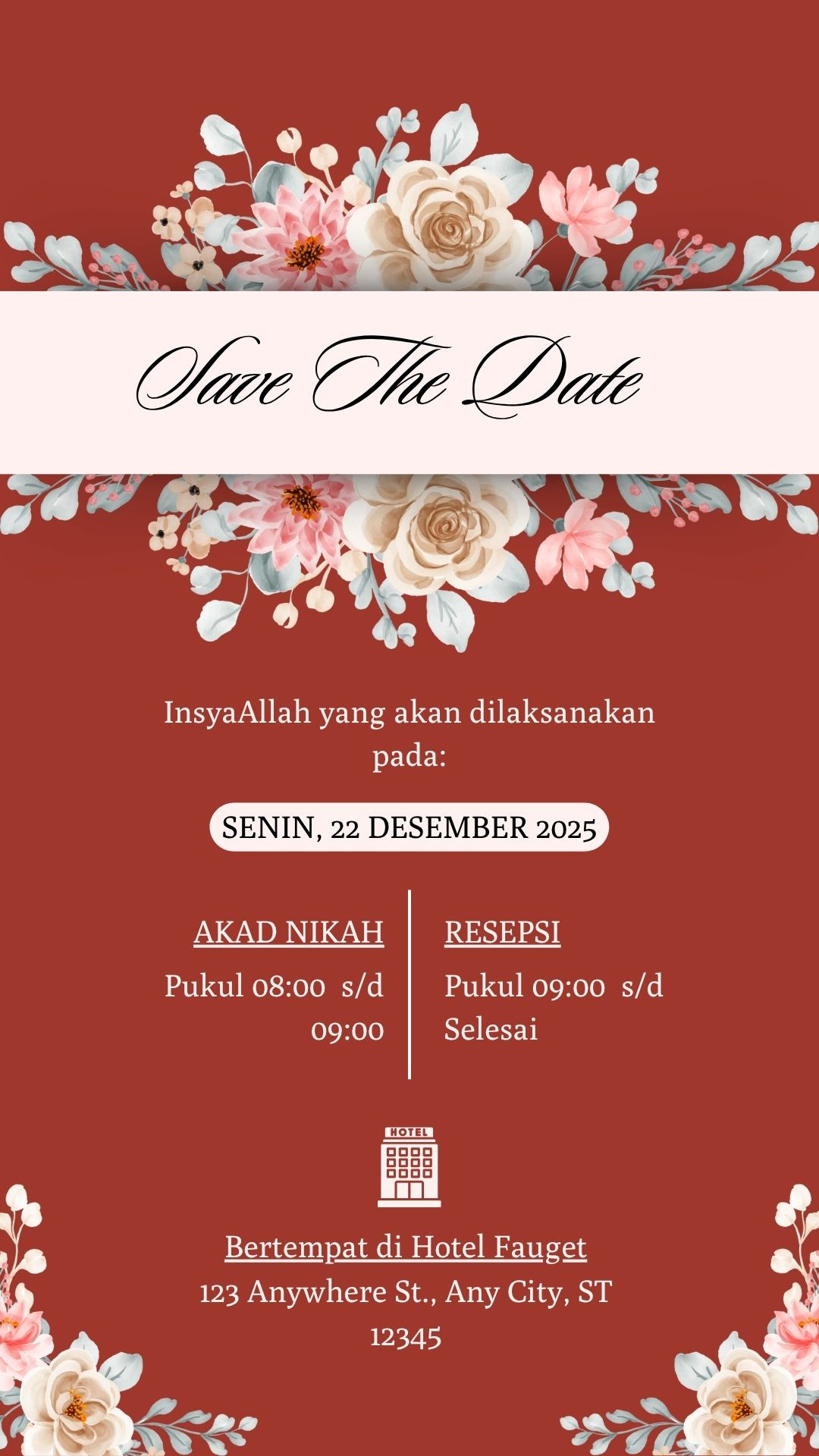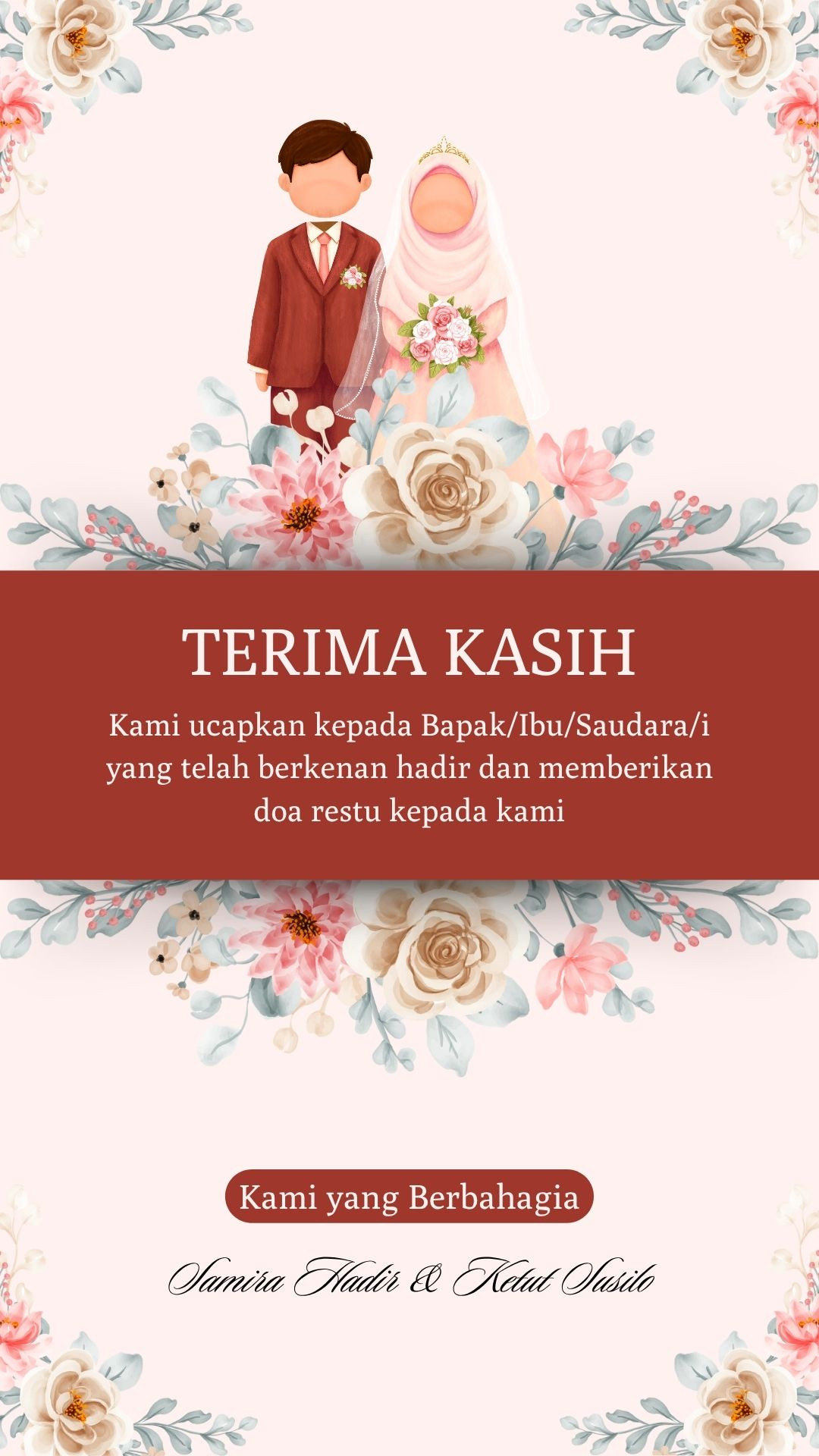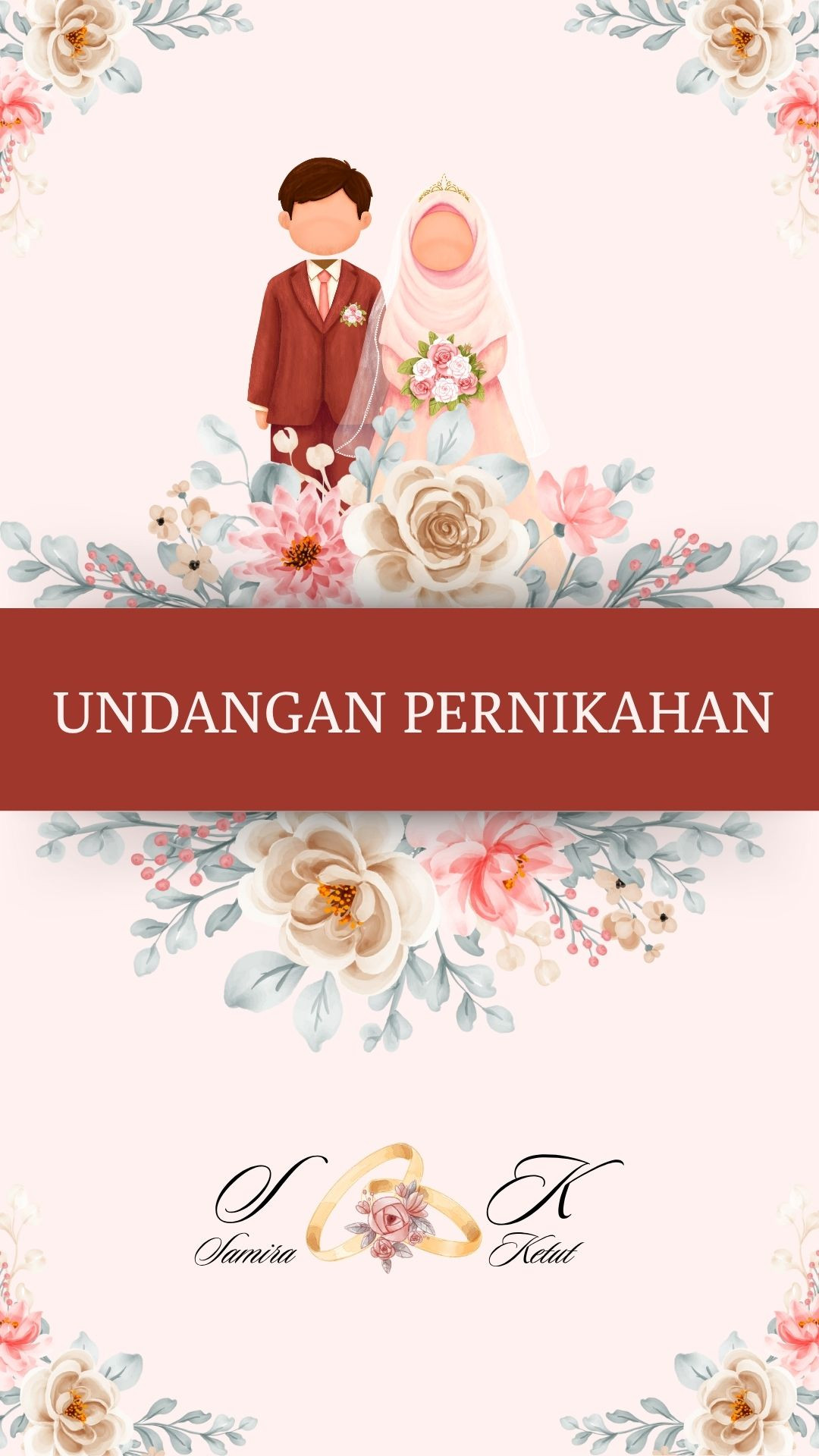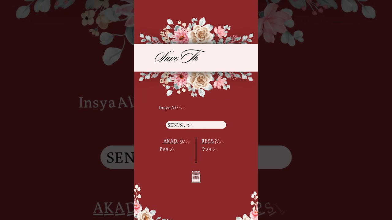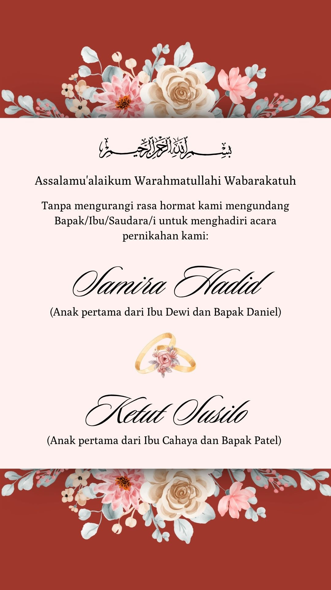 Digital Wedding Invitation Merah Marun dan Merah Muda Watercolor Bunga Cantik Islami Undangan Pernikahan Video Sehari Jadi