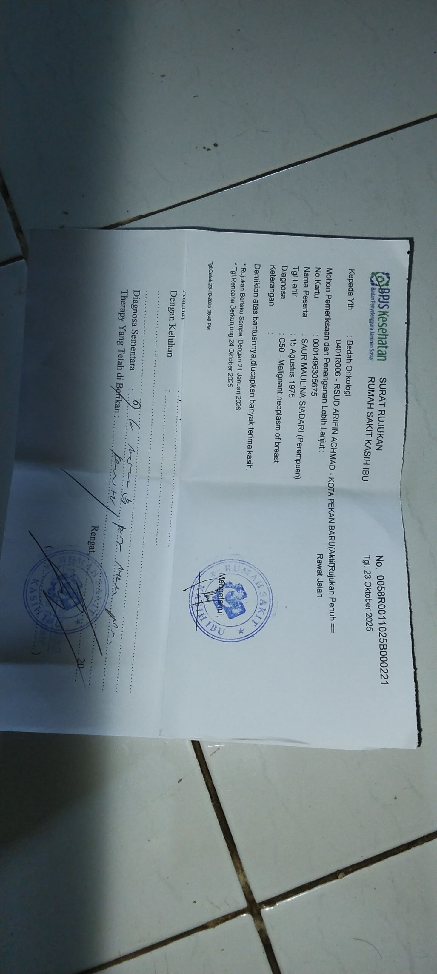 Jadwal Pertama kemoterapi Seharusnya di akhir Oktober 2025,hingga Kini sudah terkewati 4 Jadwal.