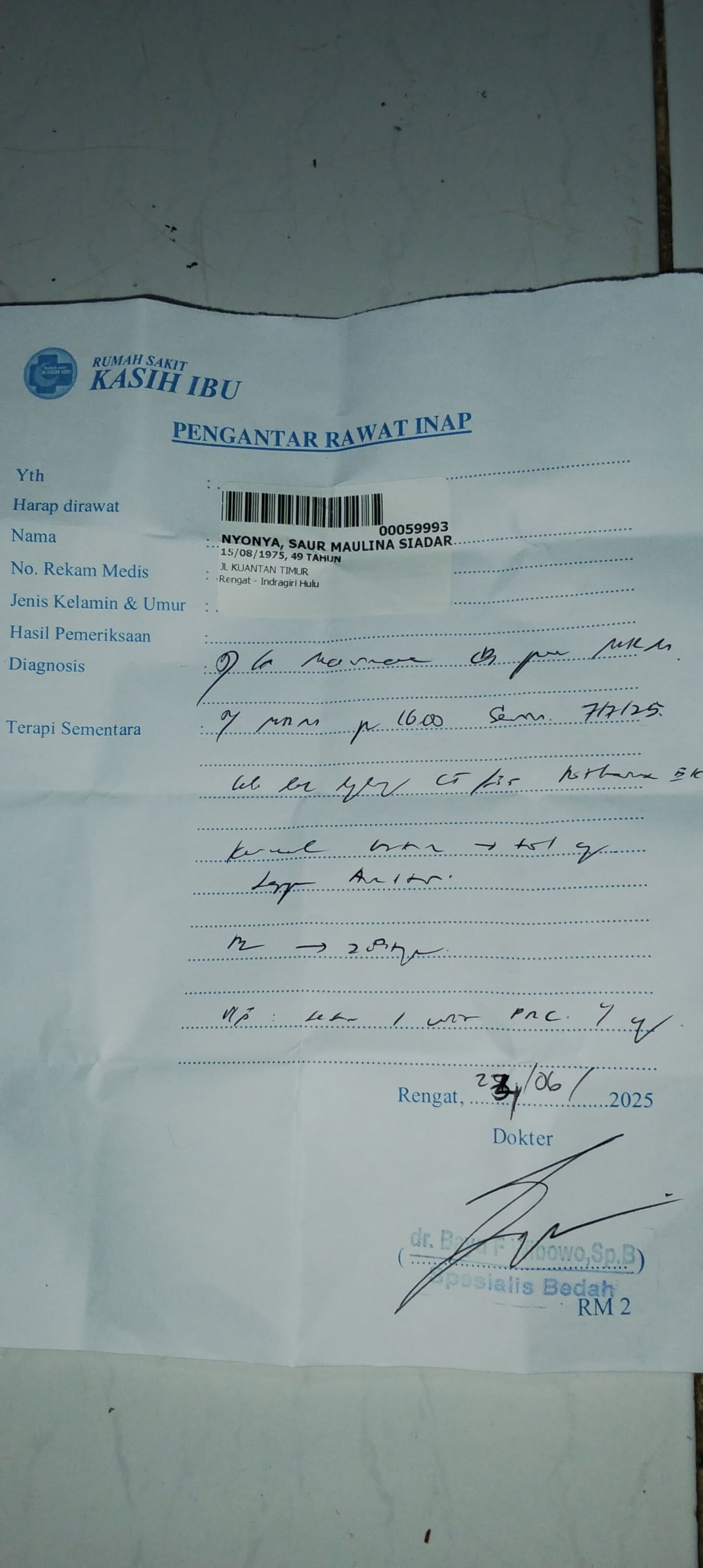 Hasil Laboratorium Menyatakan Tanggal 07juli2025 Harus Operasi Pengangkatan 2 Gumpalan di Payudara Kanan Sang Isteri